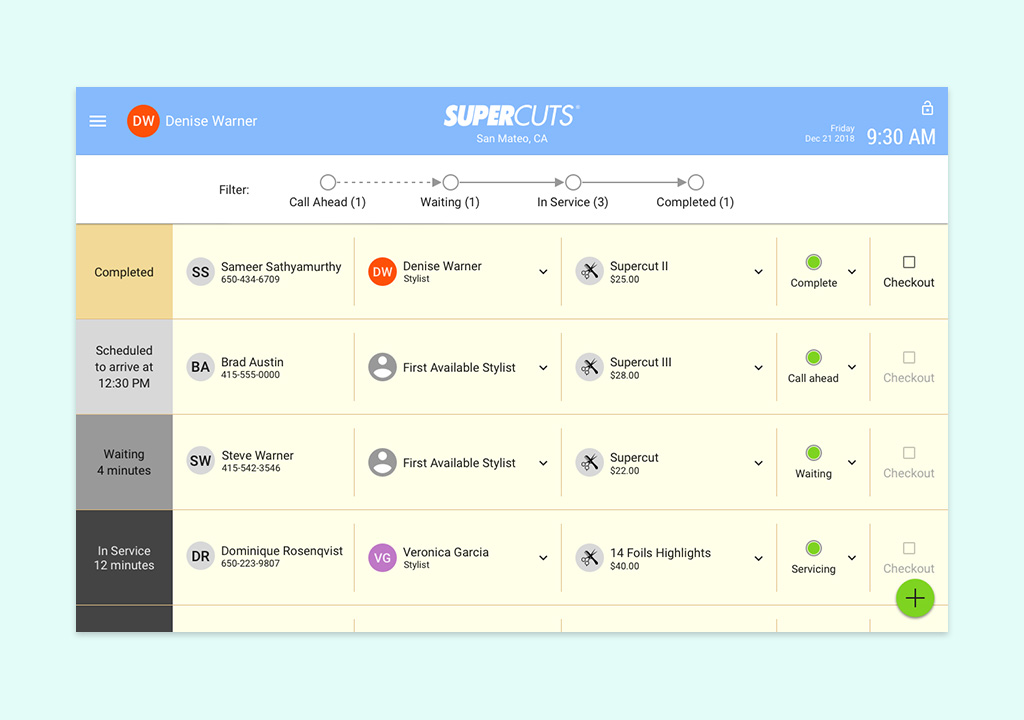 Regis POS: I redesigned this application from scratch to replace the current system. This system tracks the customers from waiting/call ahead to servicing to payment, as well as discounts, employee schedule/shifts and employee productivity.