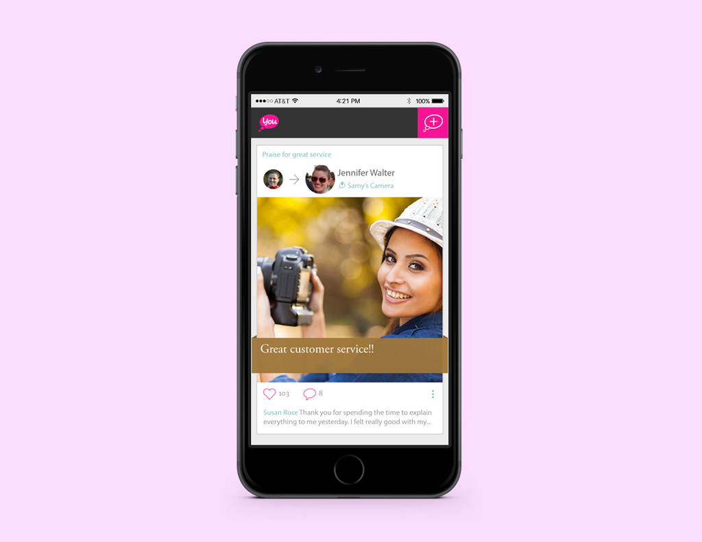 ThoughtYou, a platform for anyone to give a shout-out in public. I designed the product (including overall look and feel, wireframes, flows, specs), identity/logo, all marketing material as well as conducting usability tests.